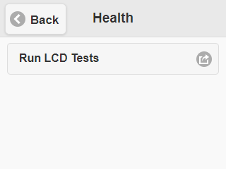 You can use the Health menu to view active alarms, view the event log, and run LCD tests.
