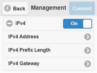0.0.0.0A confirmation message displays the configured management IPaddress, netmask, and gateway.