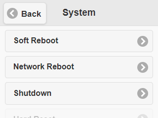 You can use the System menu to reboot, reset, halt, power off, or power on the system.